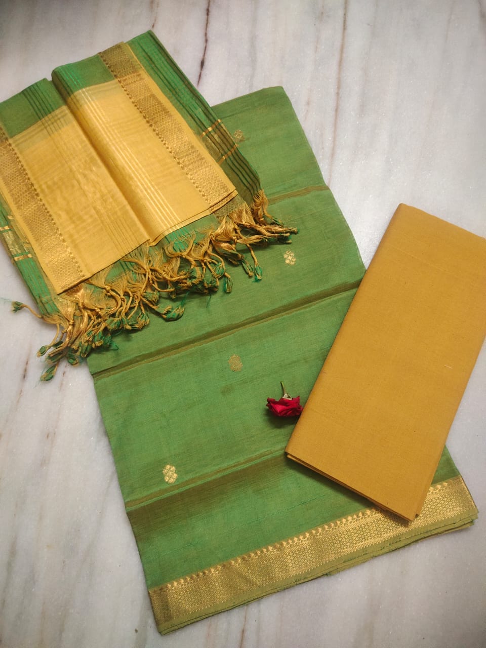 Mangalagiri Pure Handloom Orginal Kuppatam Pattu Silk Cotton Lehenga Material