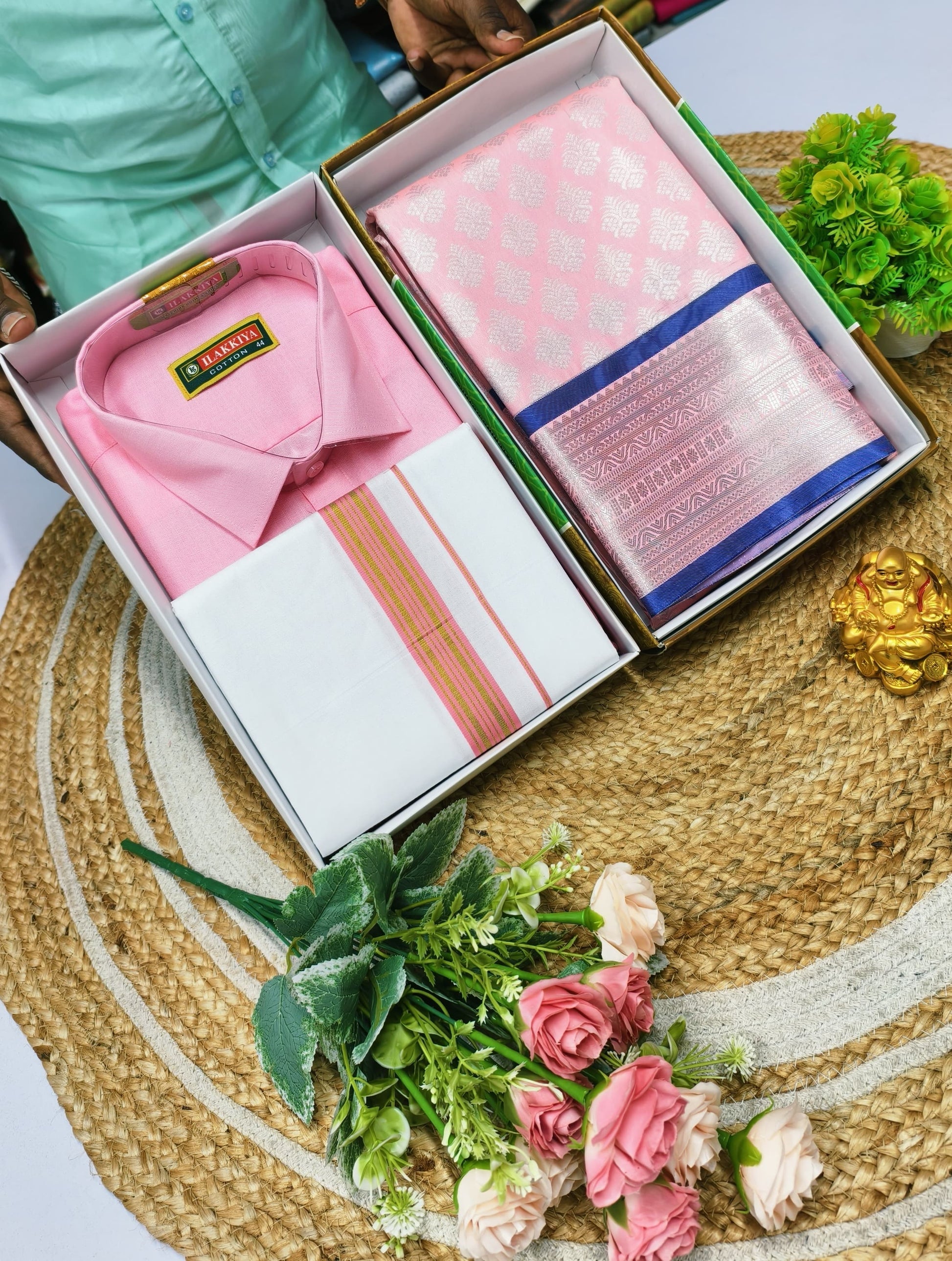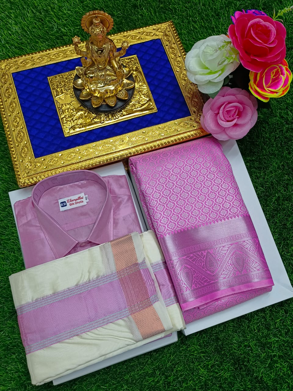 Semi Silk Dhoti Shirt Set – Emboss Pattern