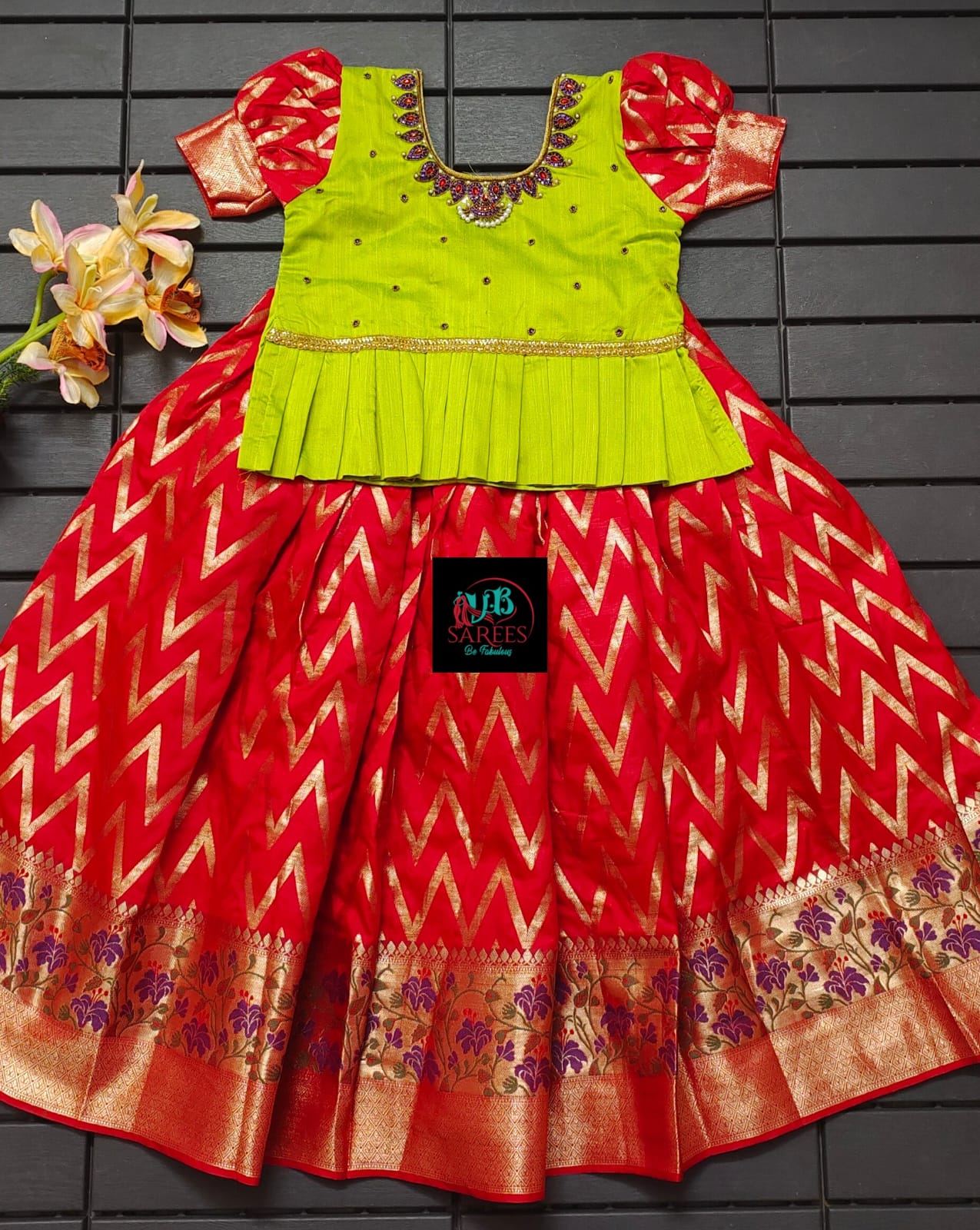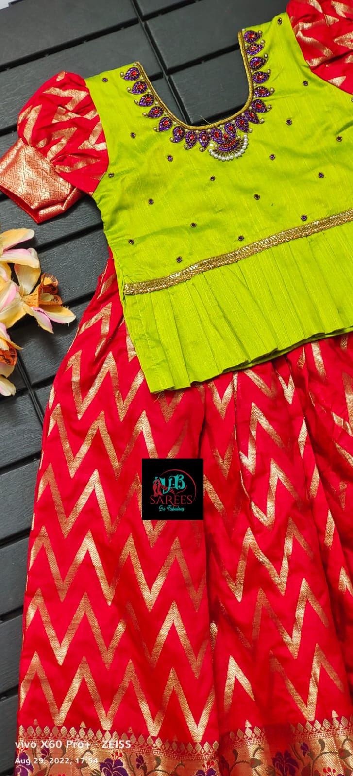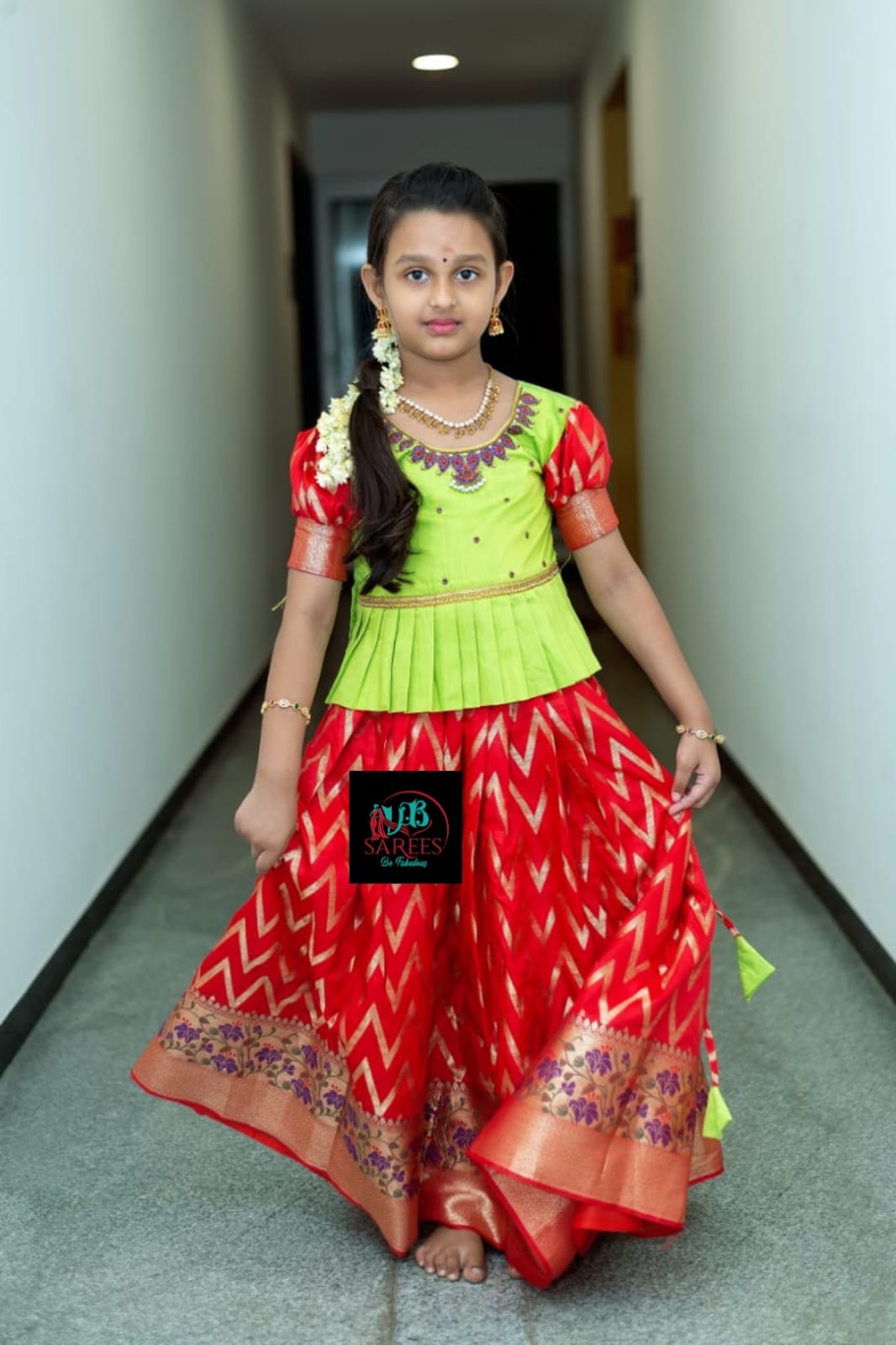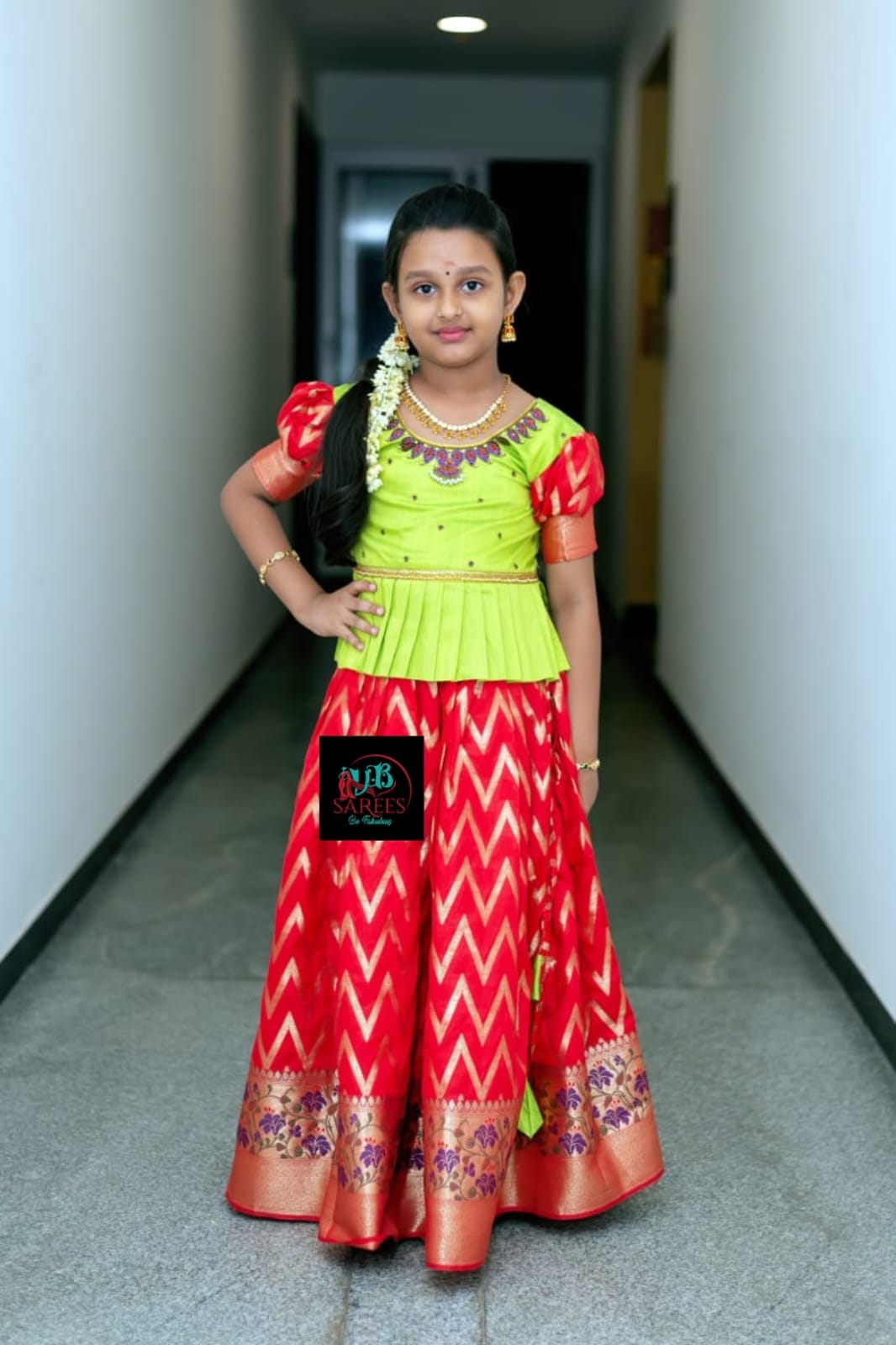 Red Color With Neon Green Color Paithani Banarasi Pbaavadai Sattai