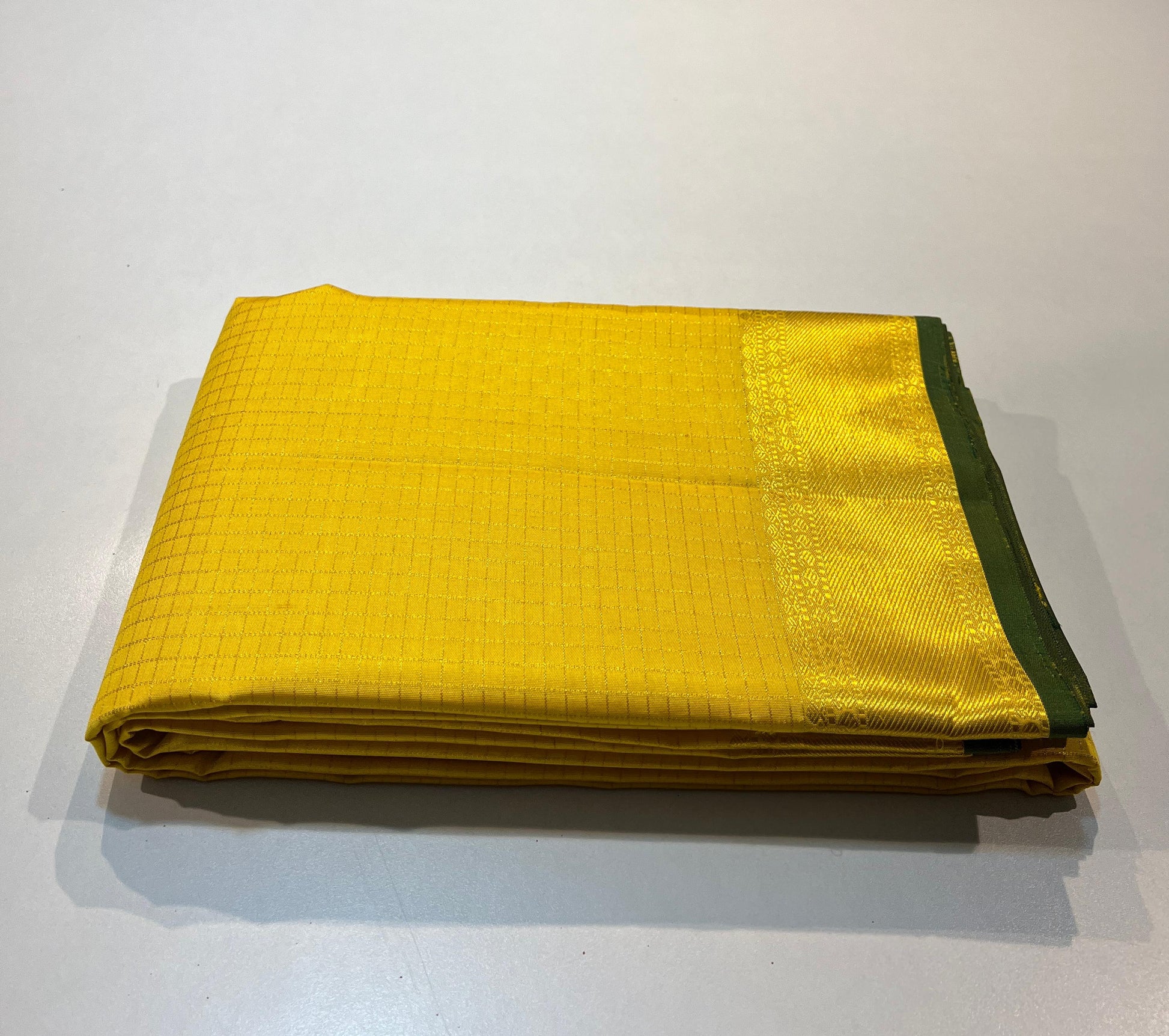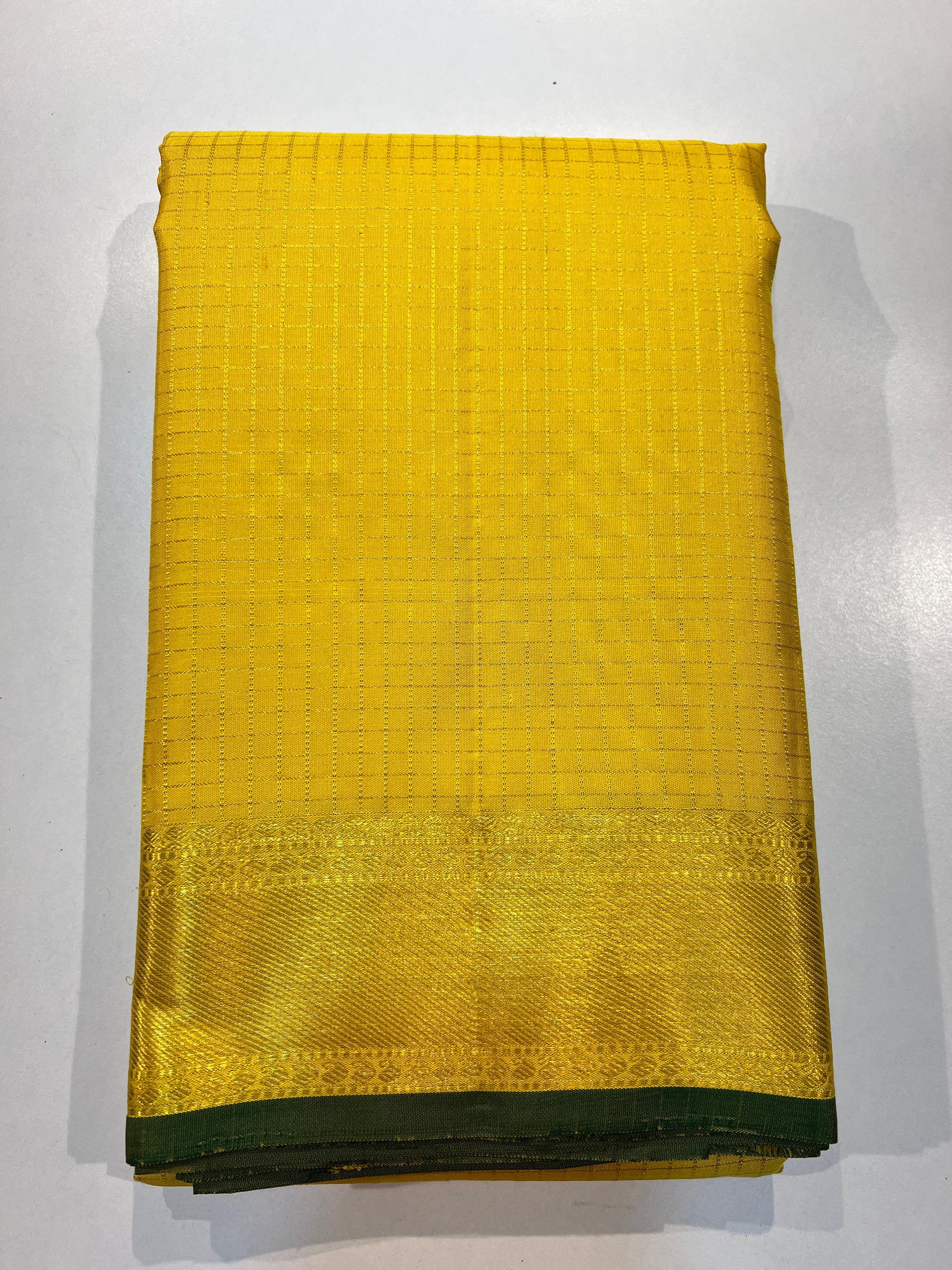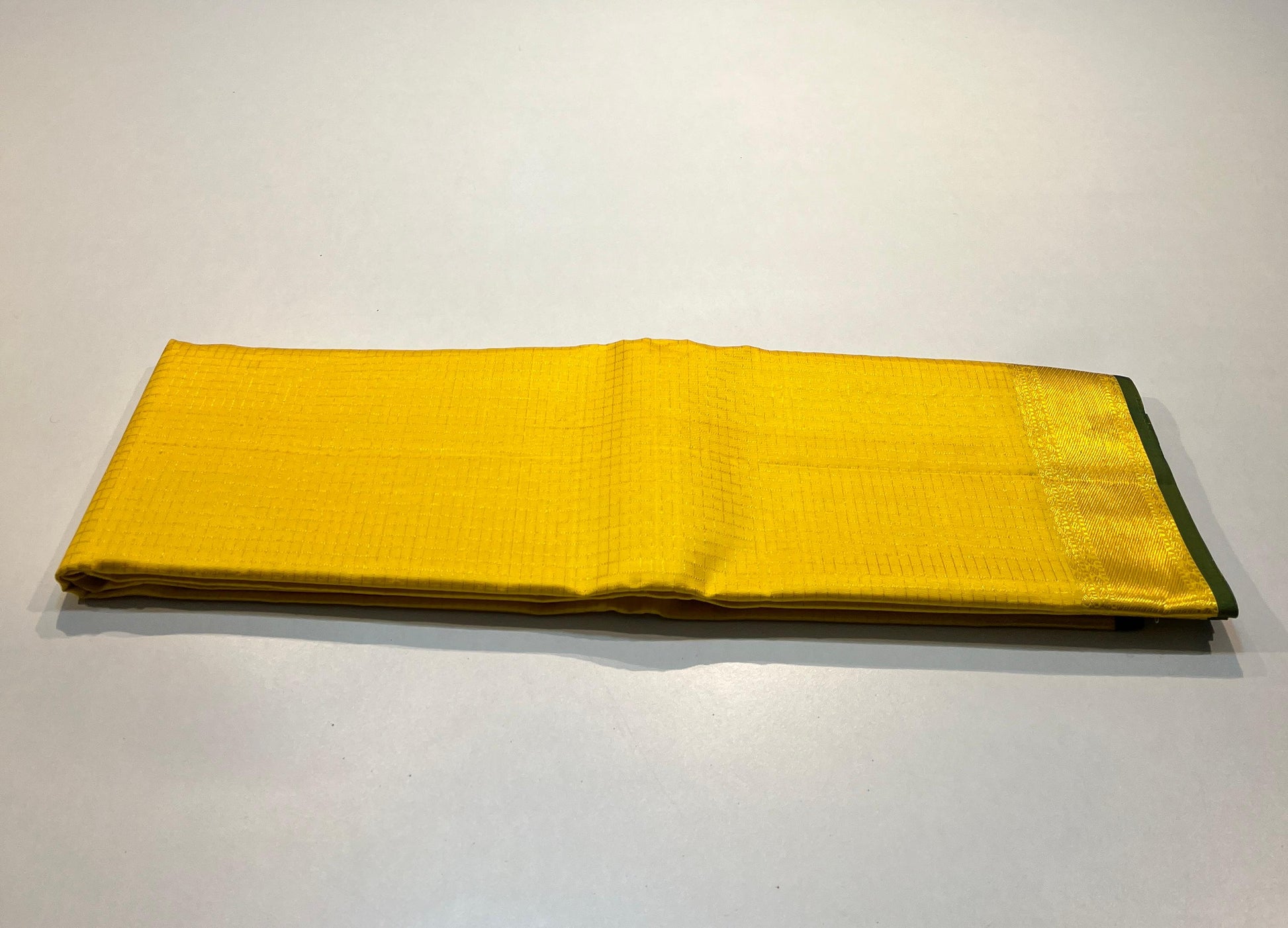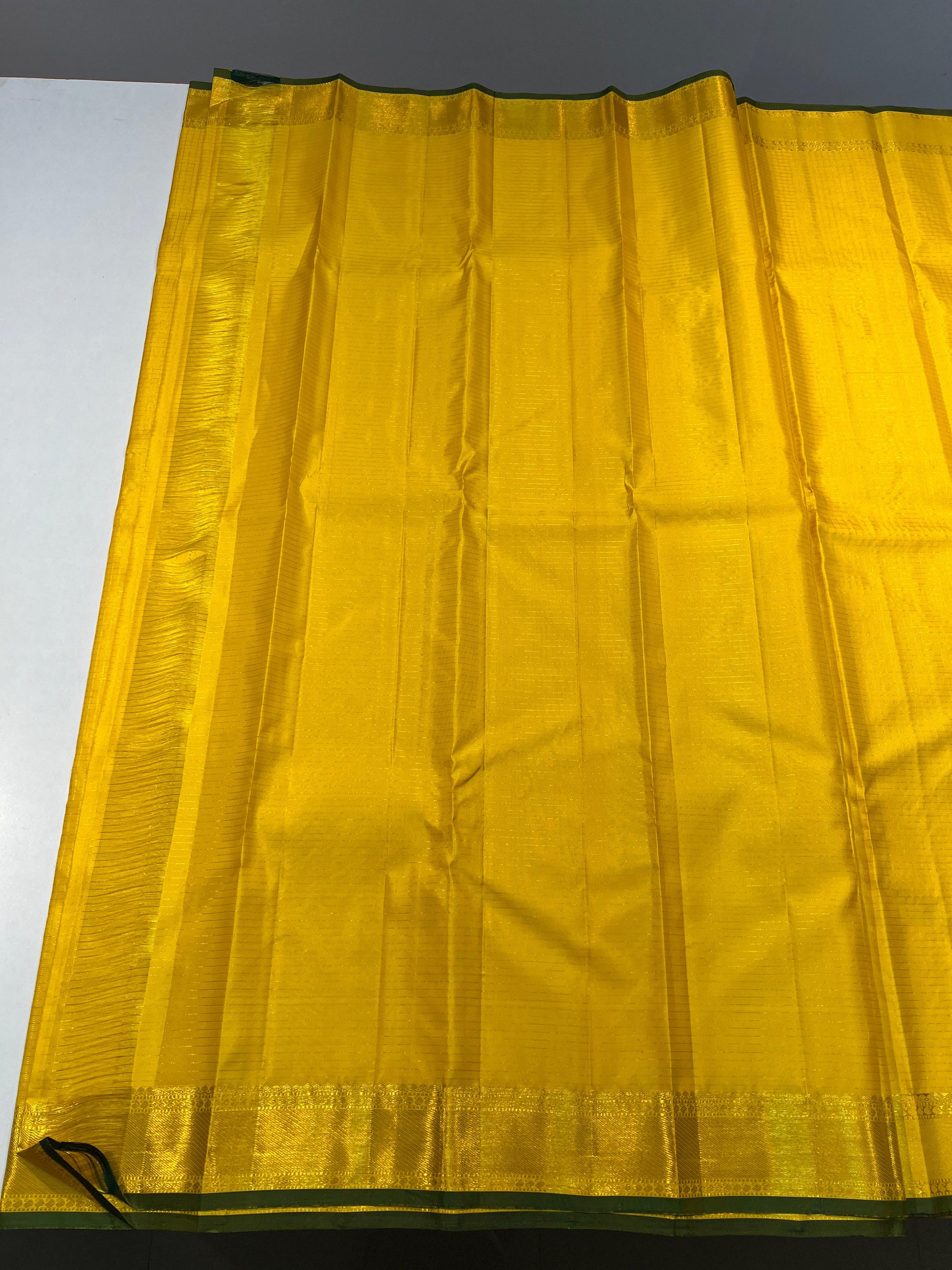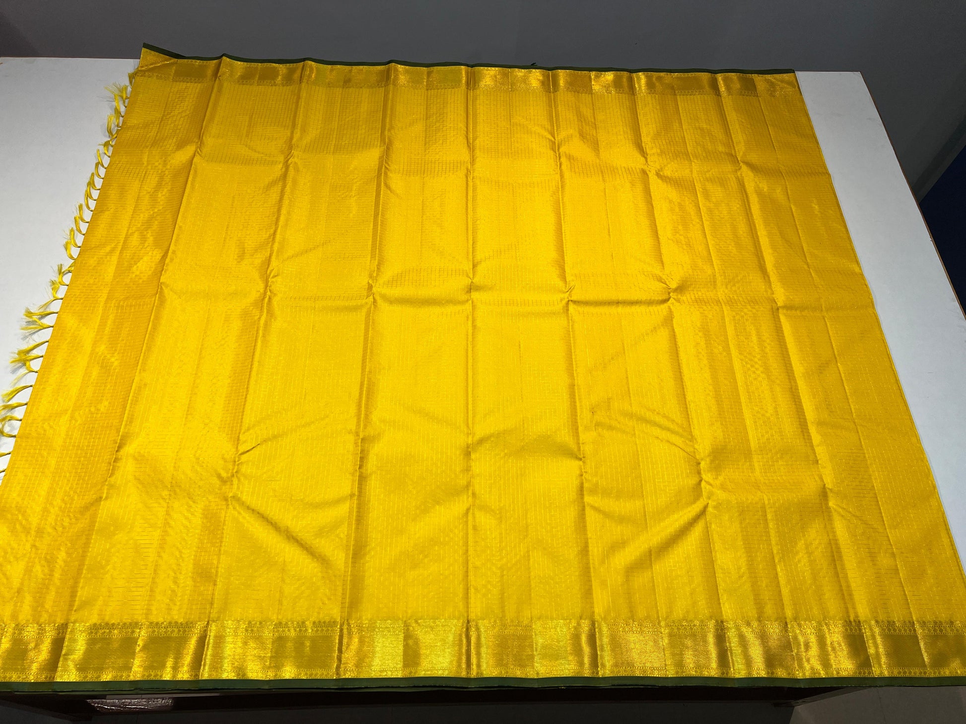 Kanchipuram 2 Gram Pure Zari Yellow and Green Color Vaira Oosi Silk Saree
