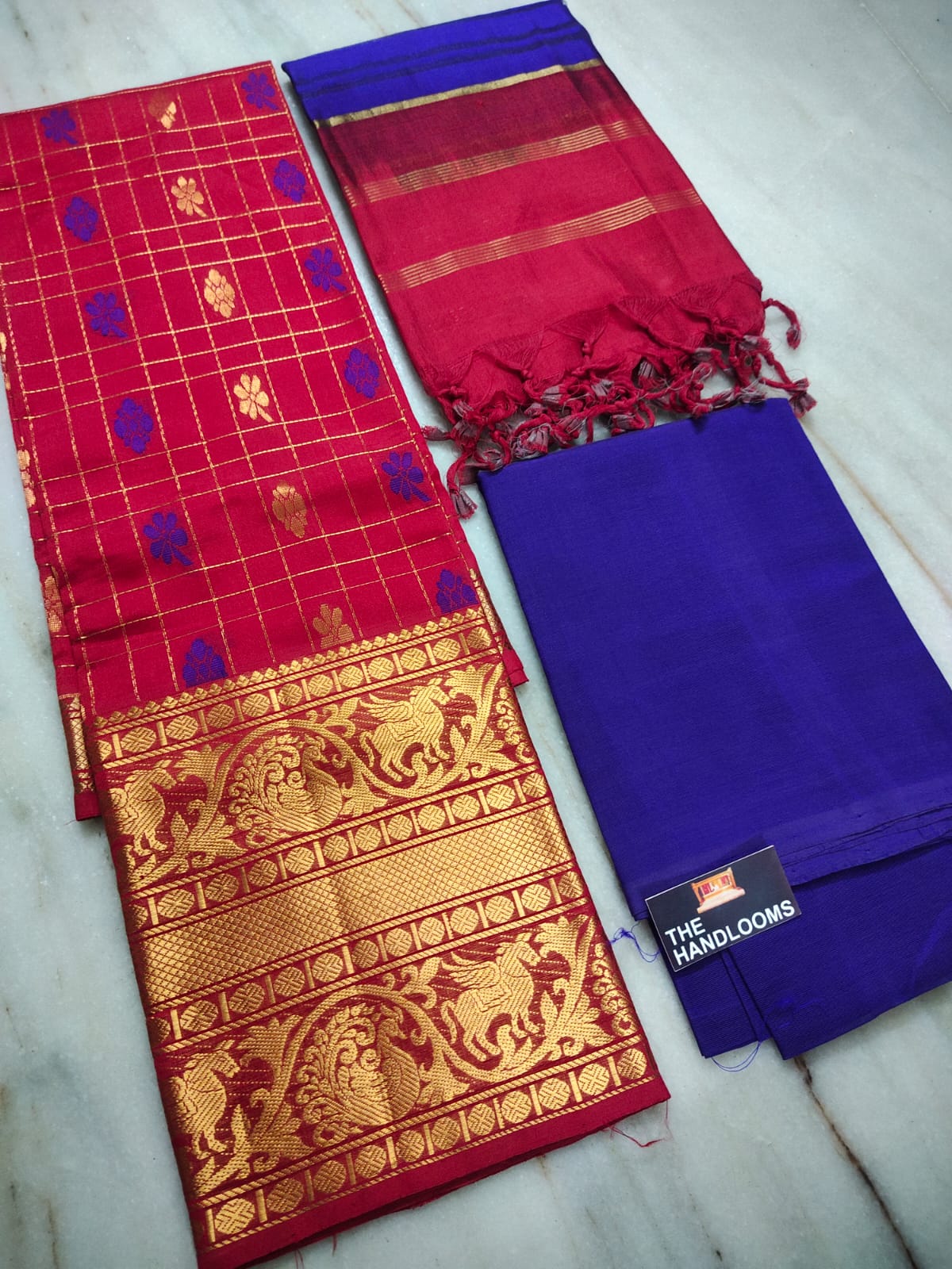 Mangalagiri woven pattern kuppadam style or mangalagiri style.