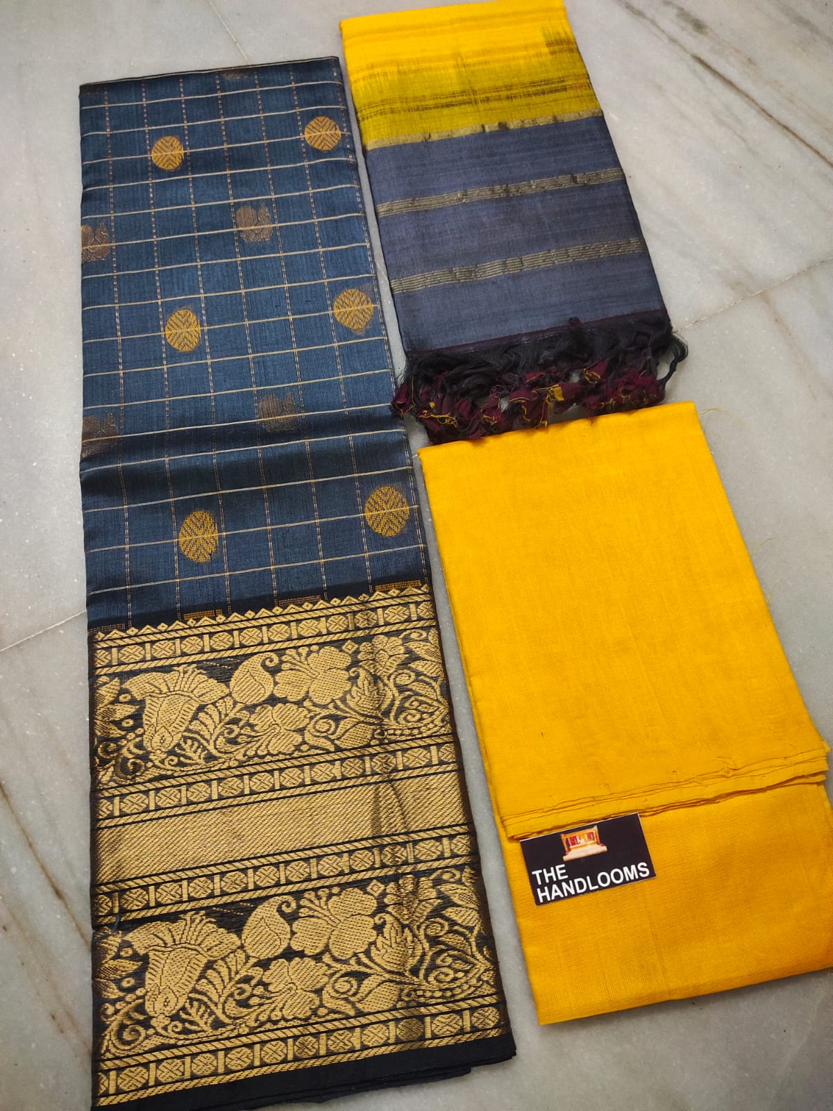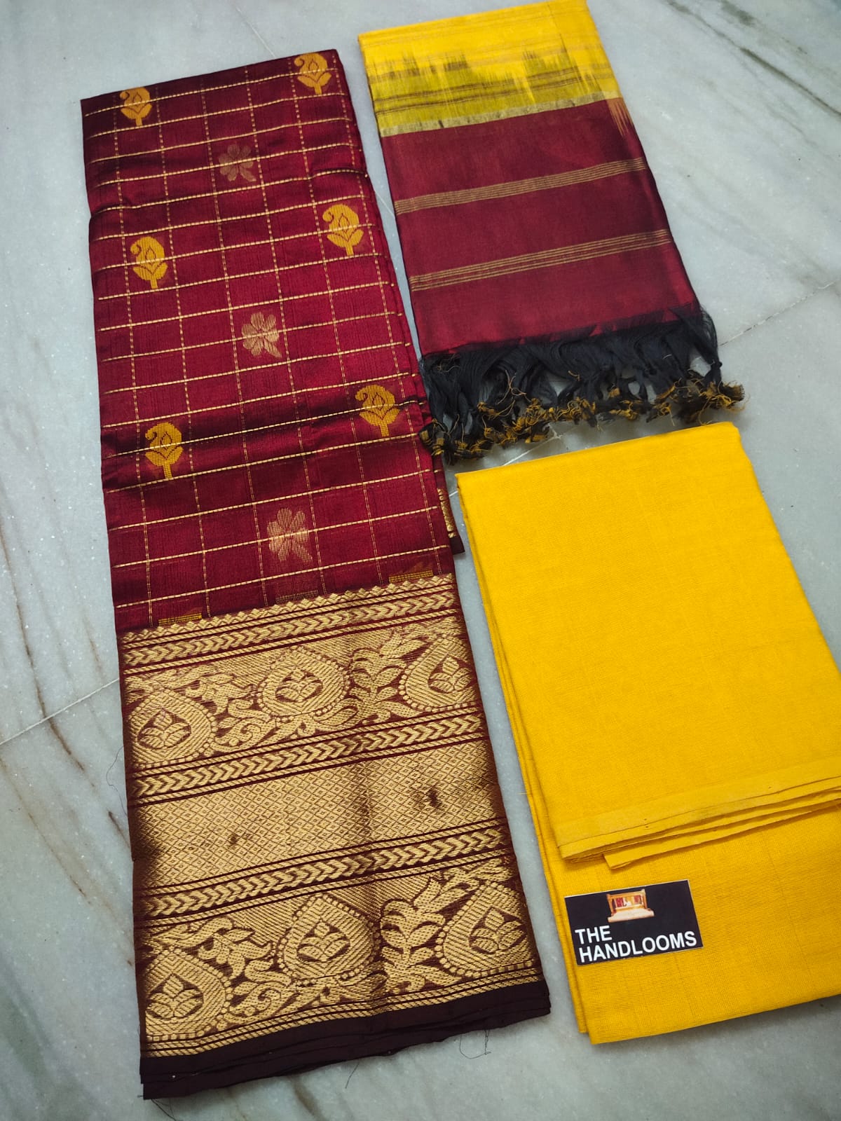 Mangalagiri handloom pure kuppatam pattu (silk by cotton) dress material