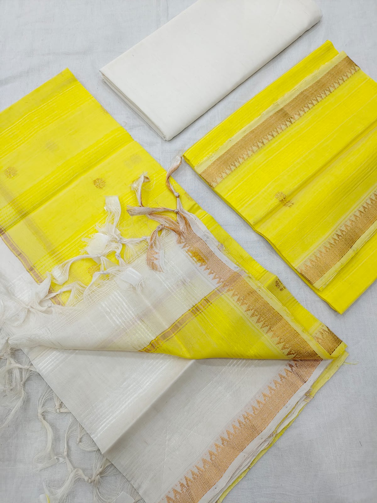 Mangalagiri pattu zari border zari buta work dress material (unstitched)