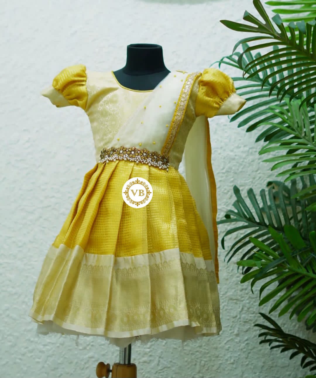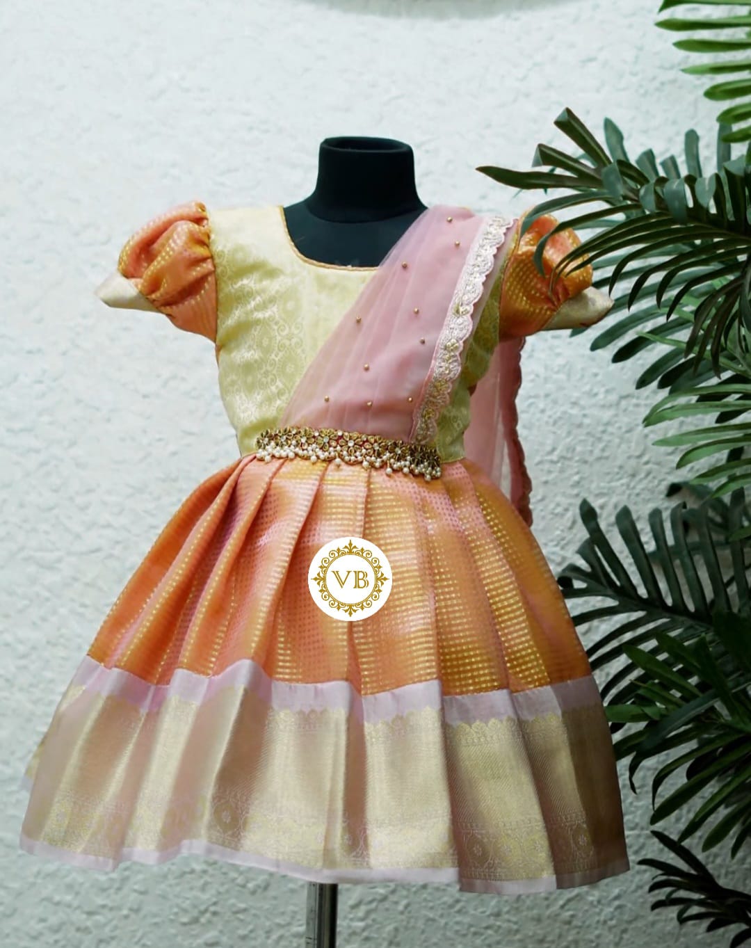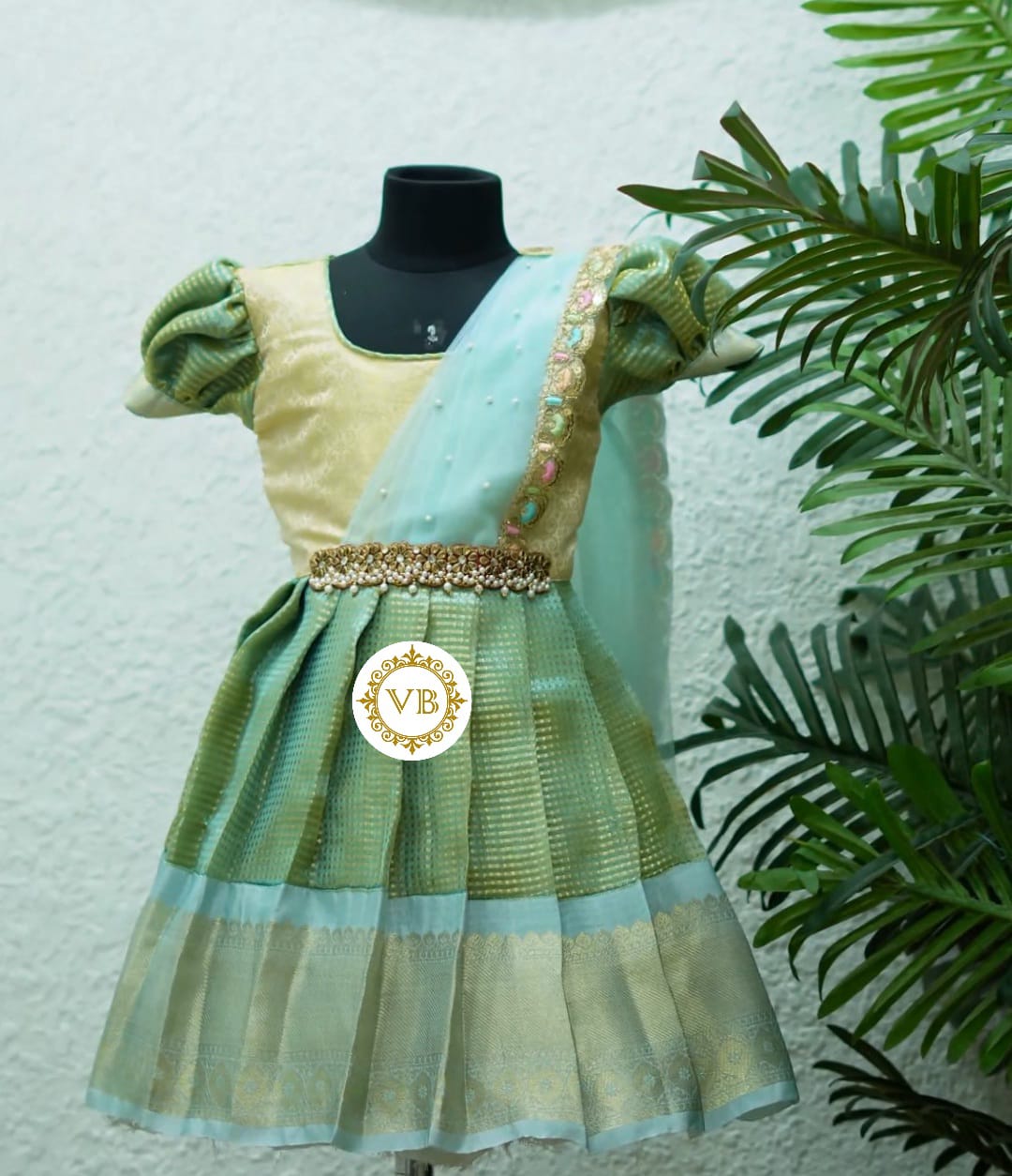 Pastel Shade Gold Tissue Kids Half Saree