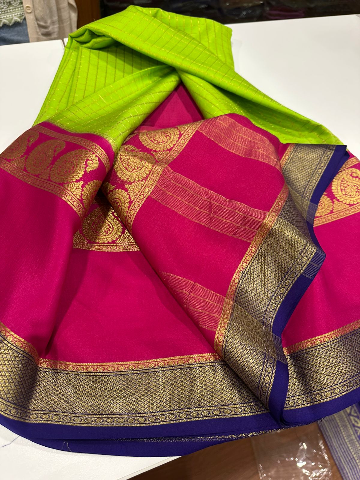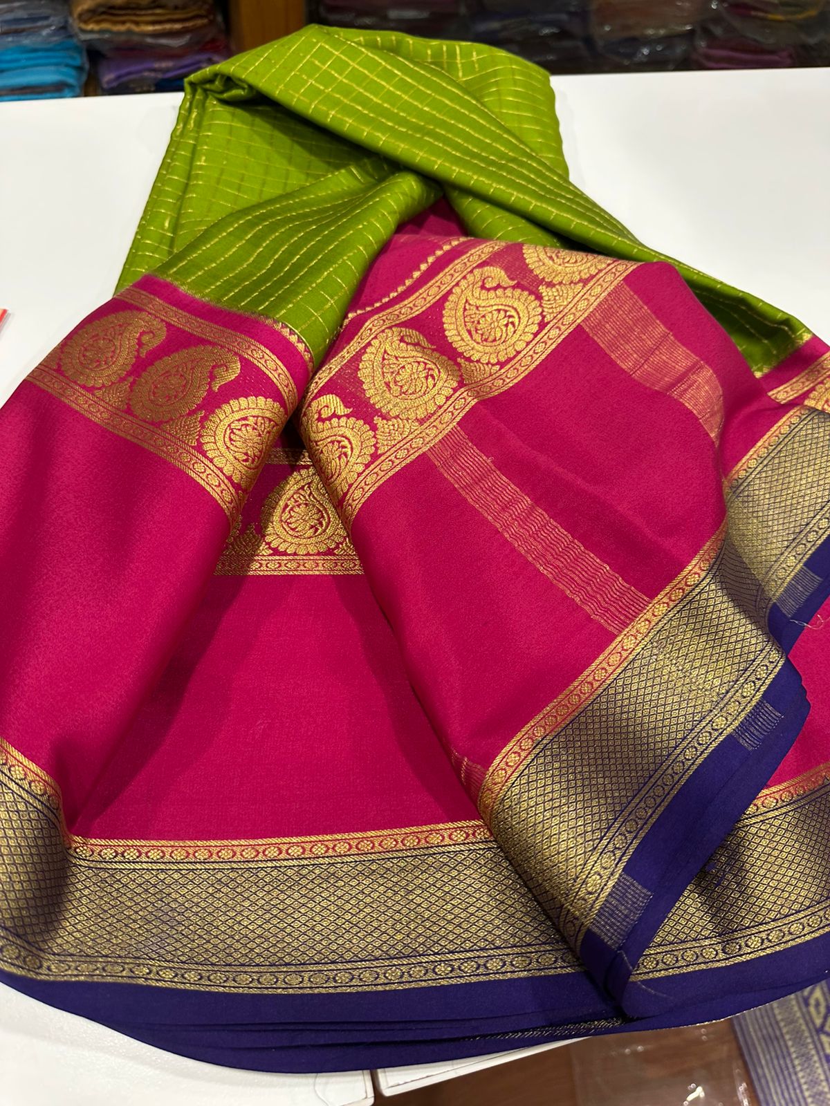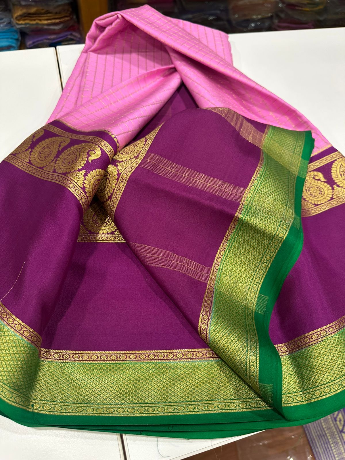 Pure mysore silk 120 grm 3 color combination saree