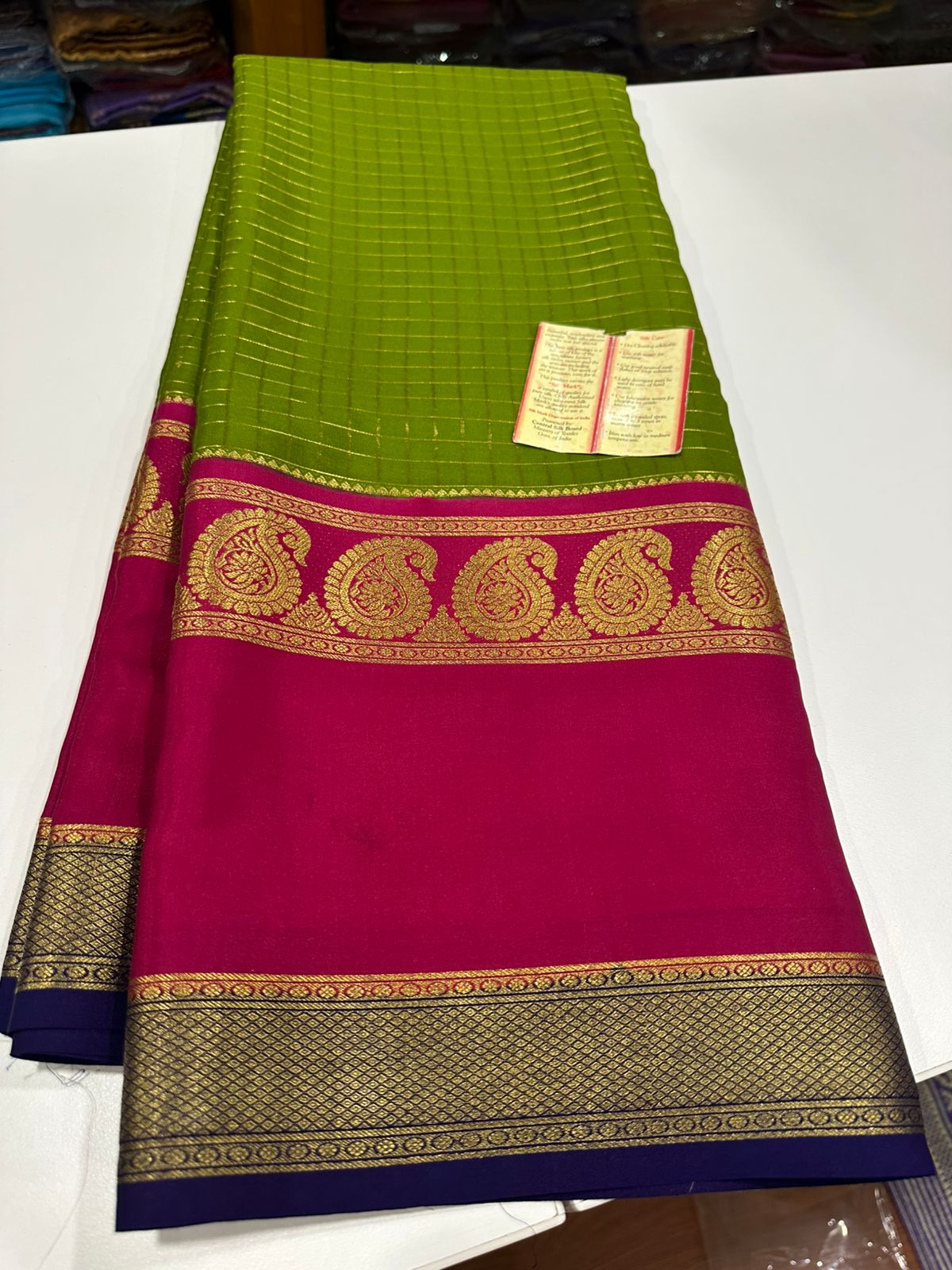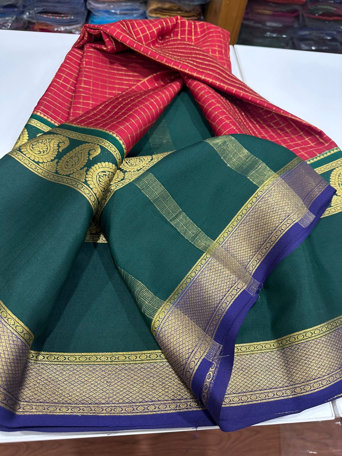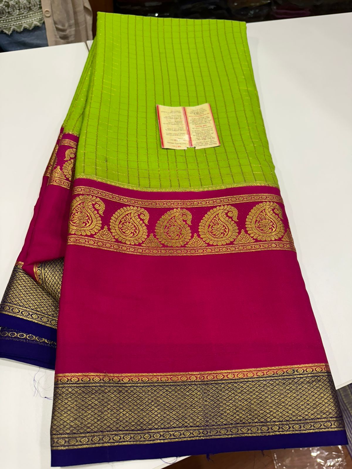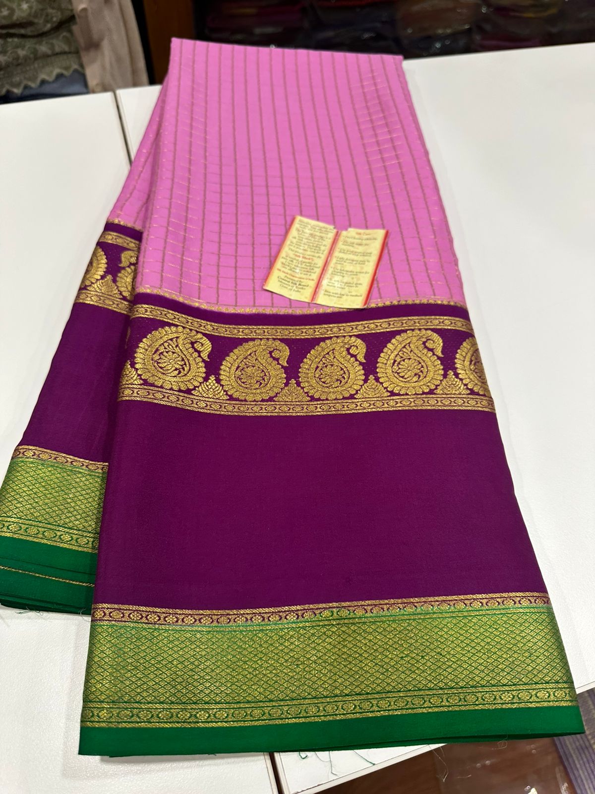 Pure mysore silk 120 grm 3 color combination saree