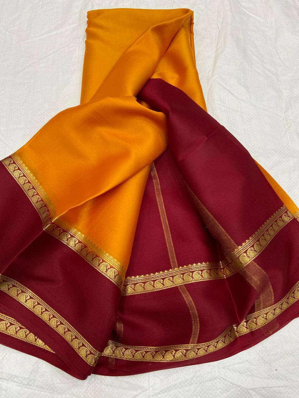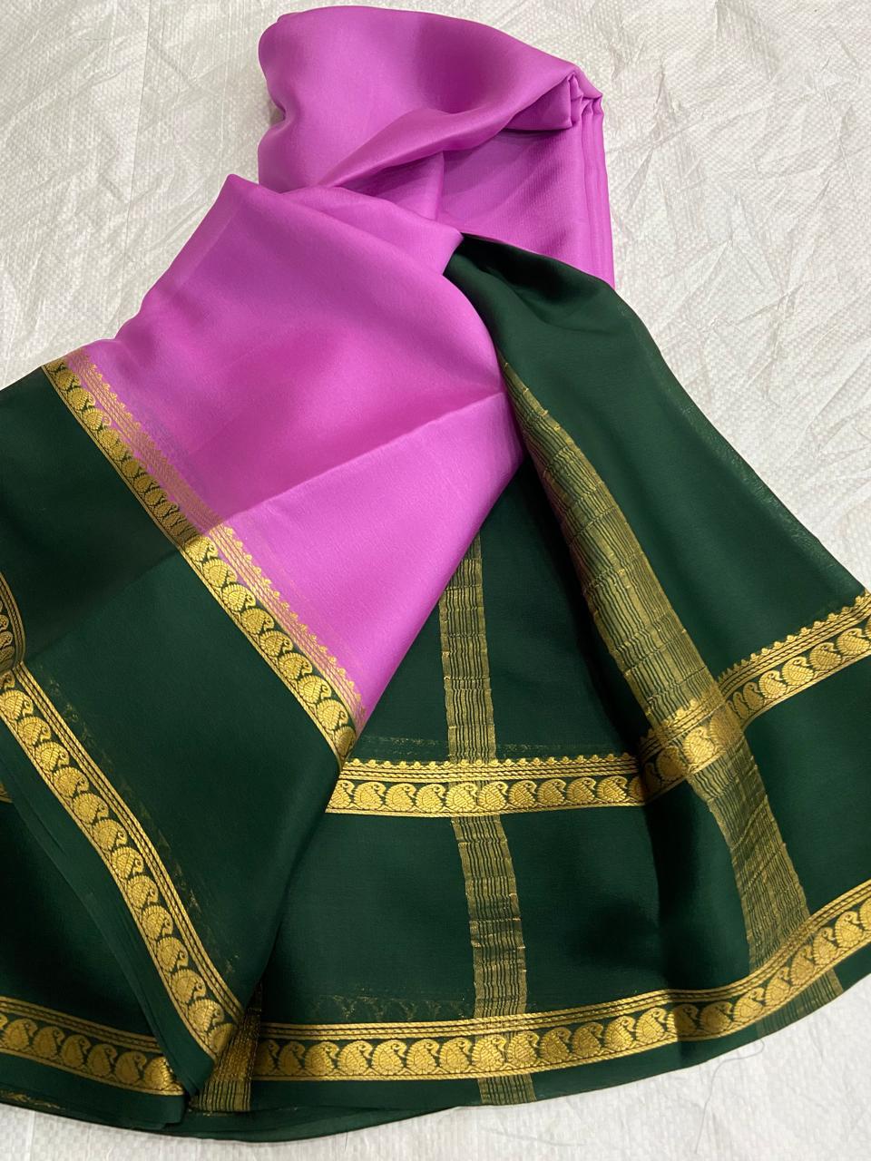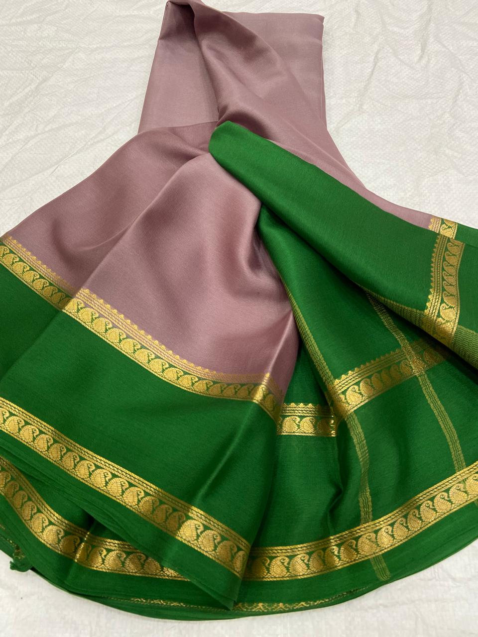 Graceful Pure Mysore Silk Saree with Small Mango Border