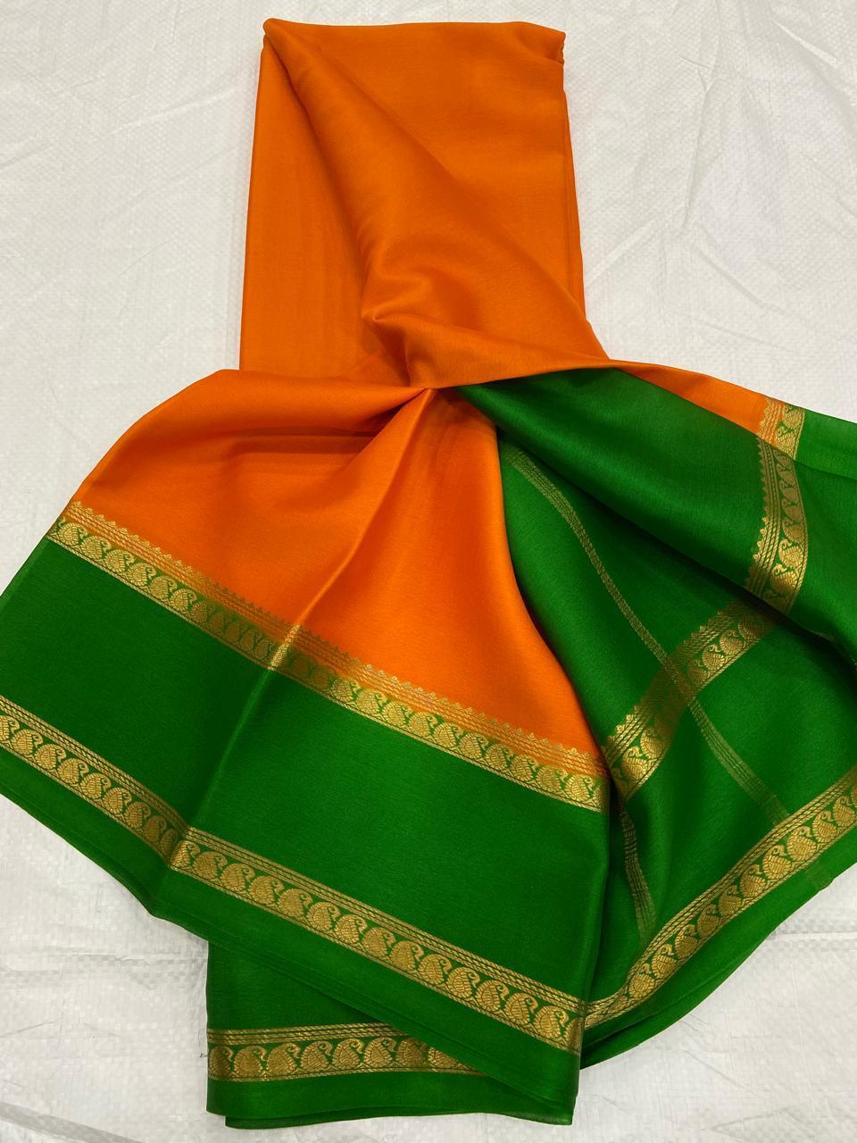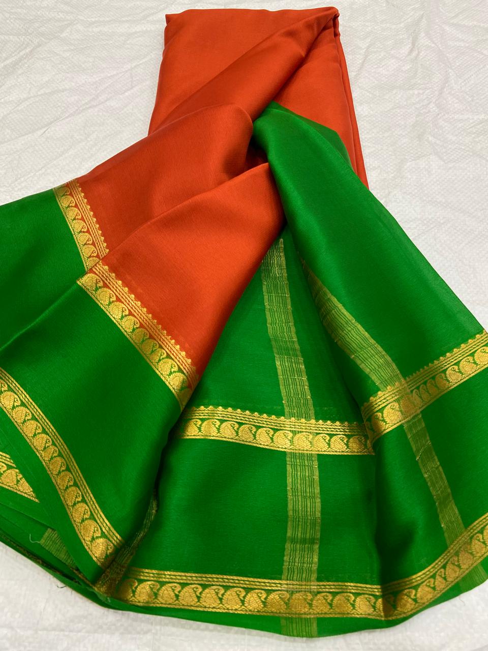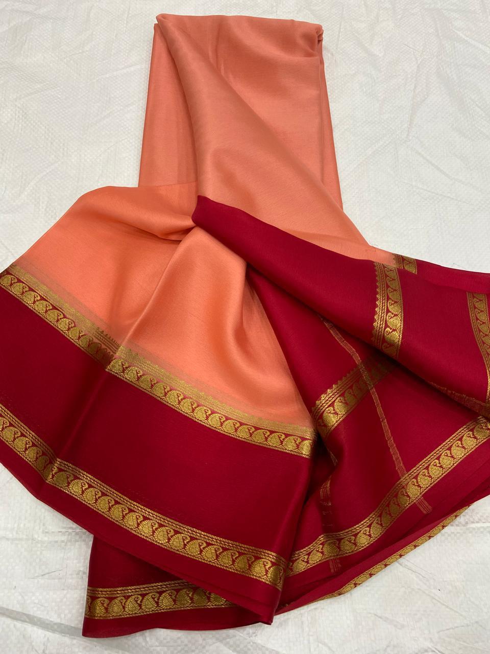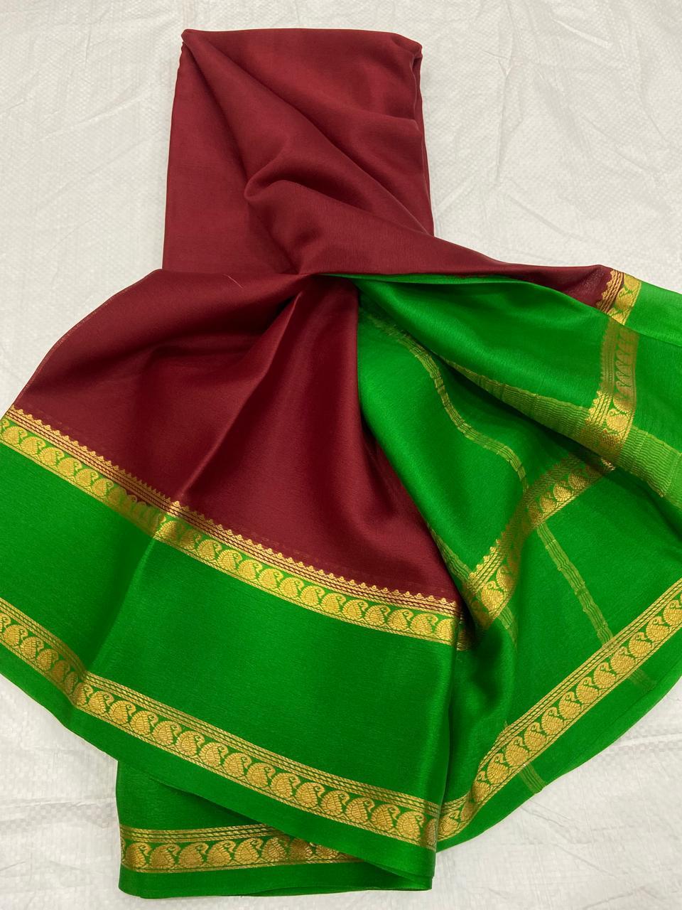 Graceful Pure Mysore Silk Saree with Small Mango Border