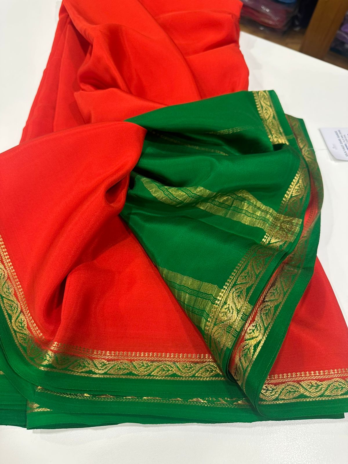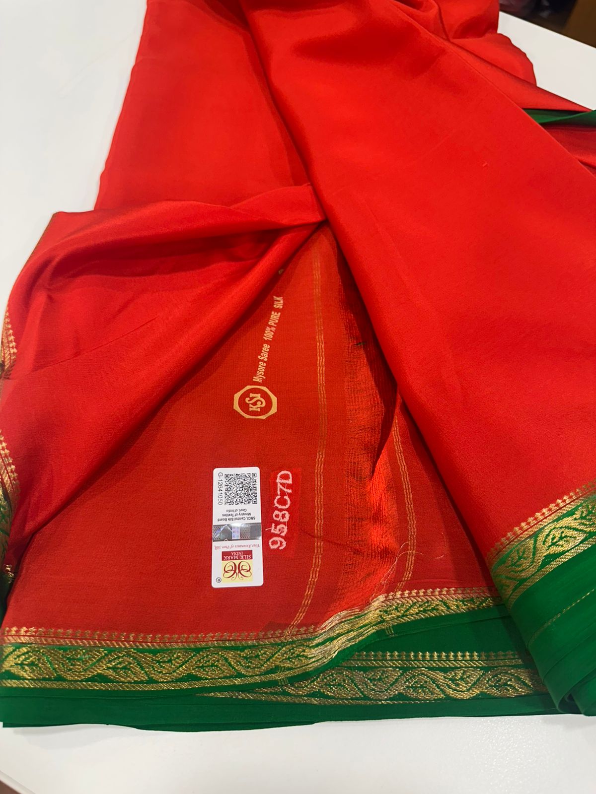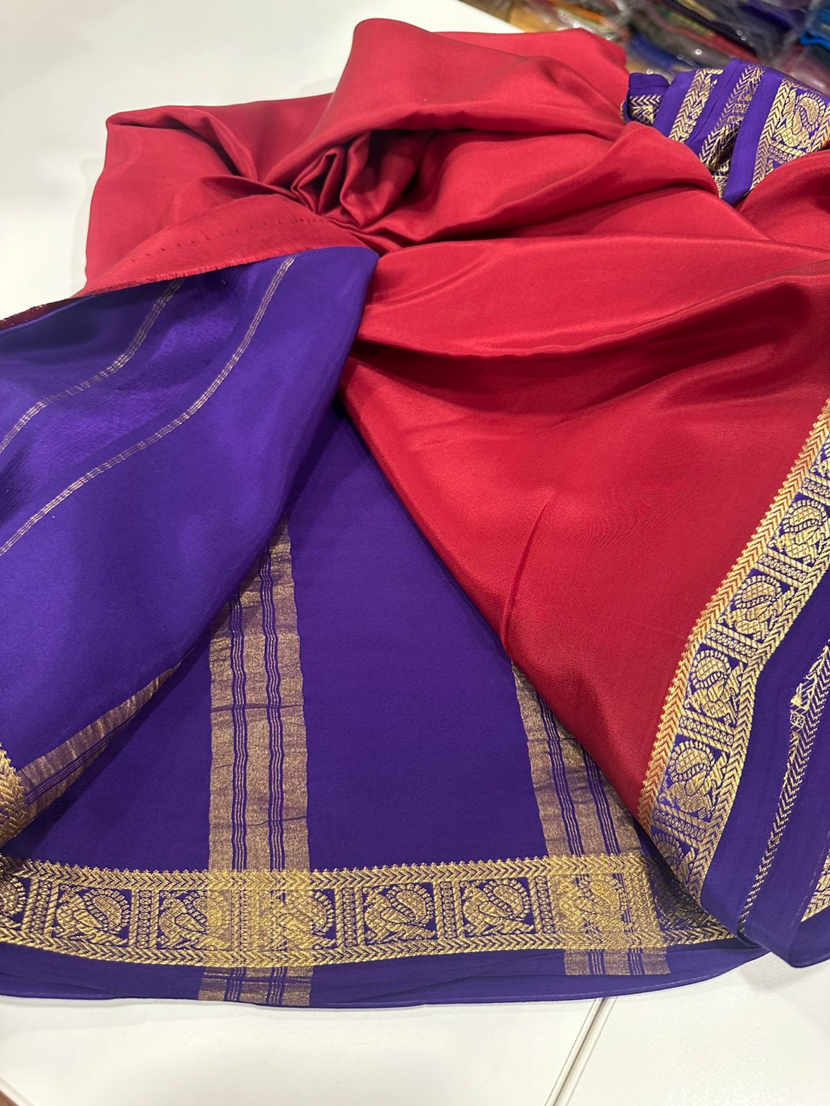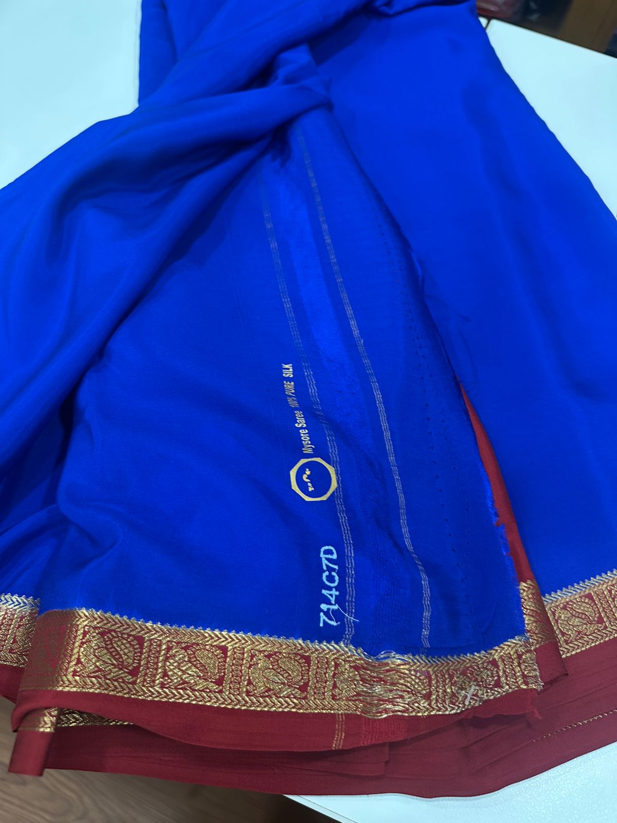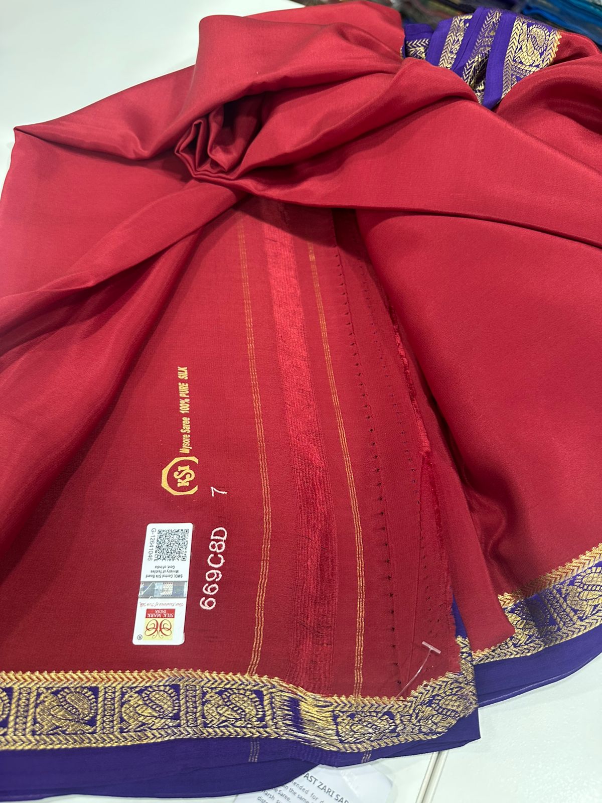 Pure Mysore Silk Real Gold and Silver Zari Work Saree