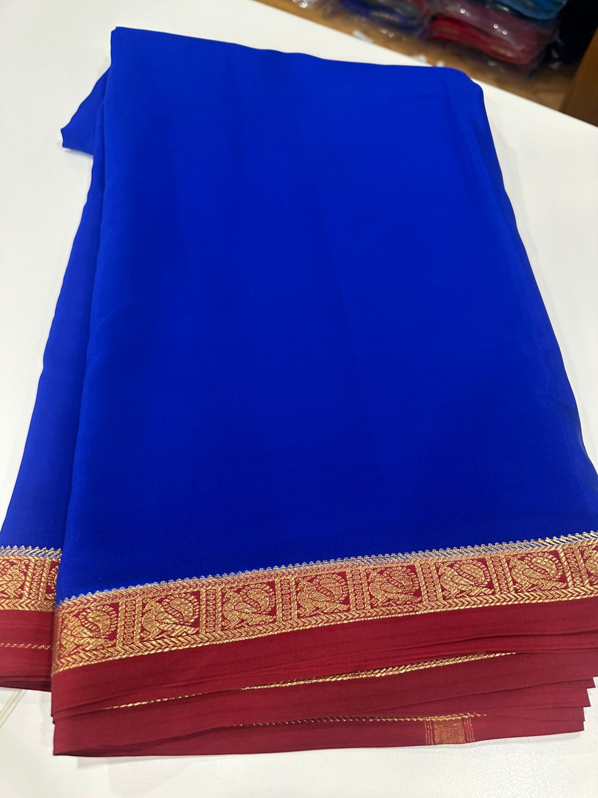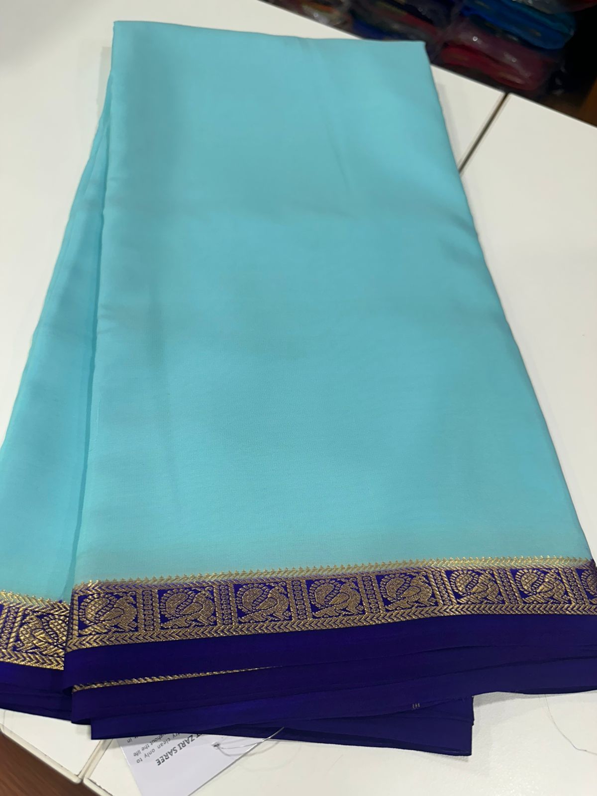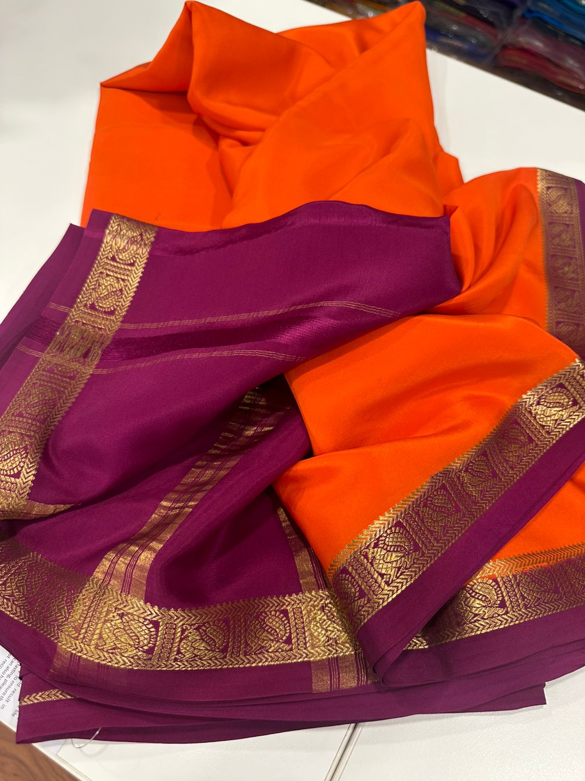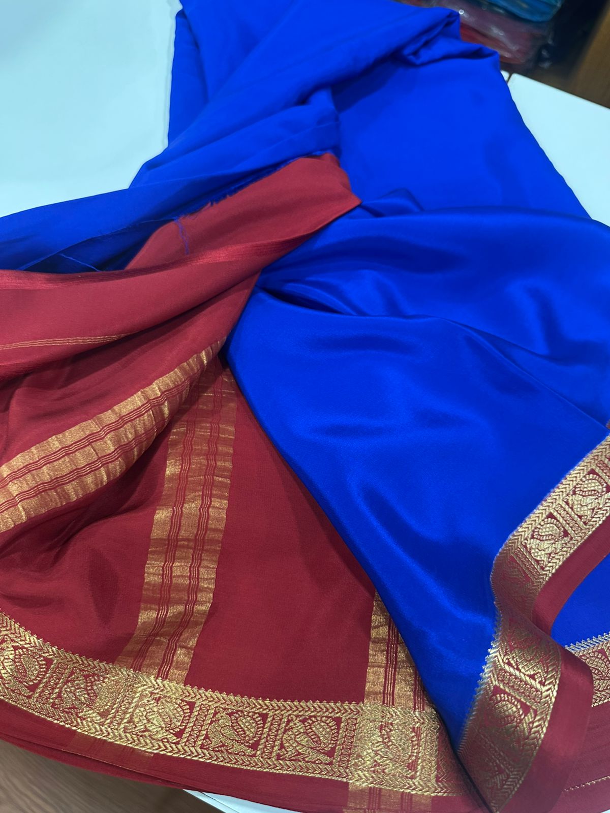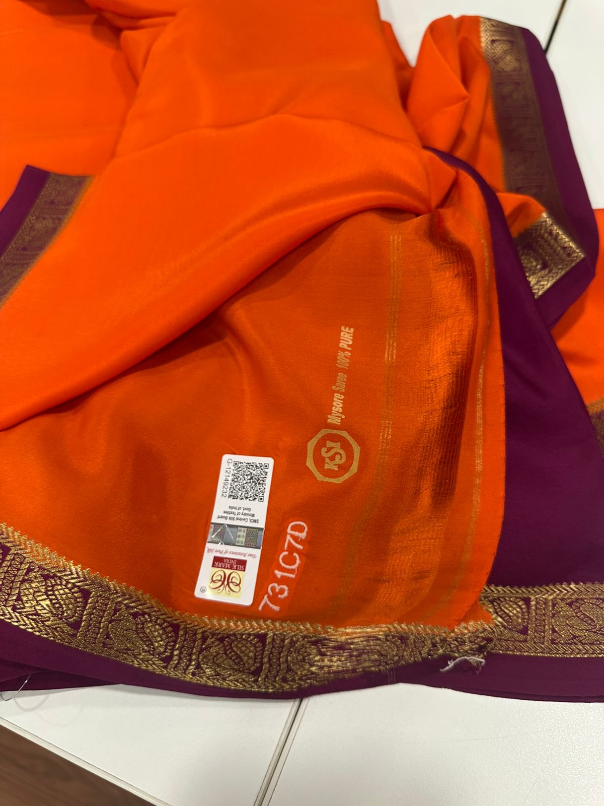 Pure Mysore Silk Real Gold and Silver Zari Work Saree